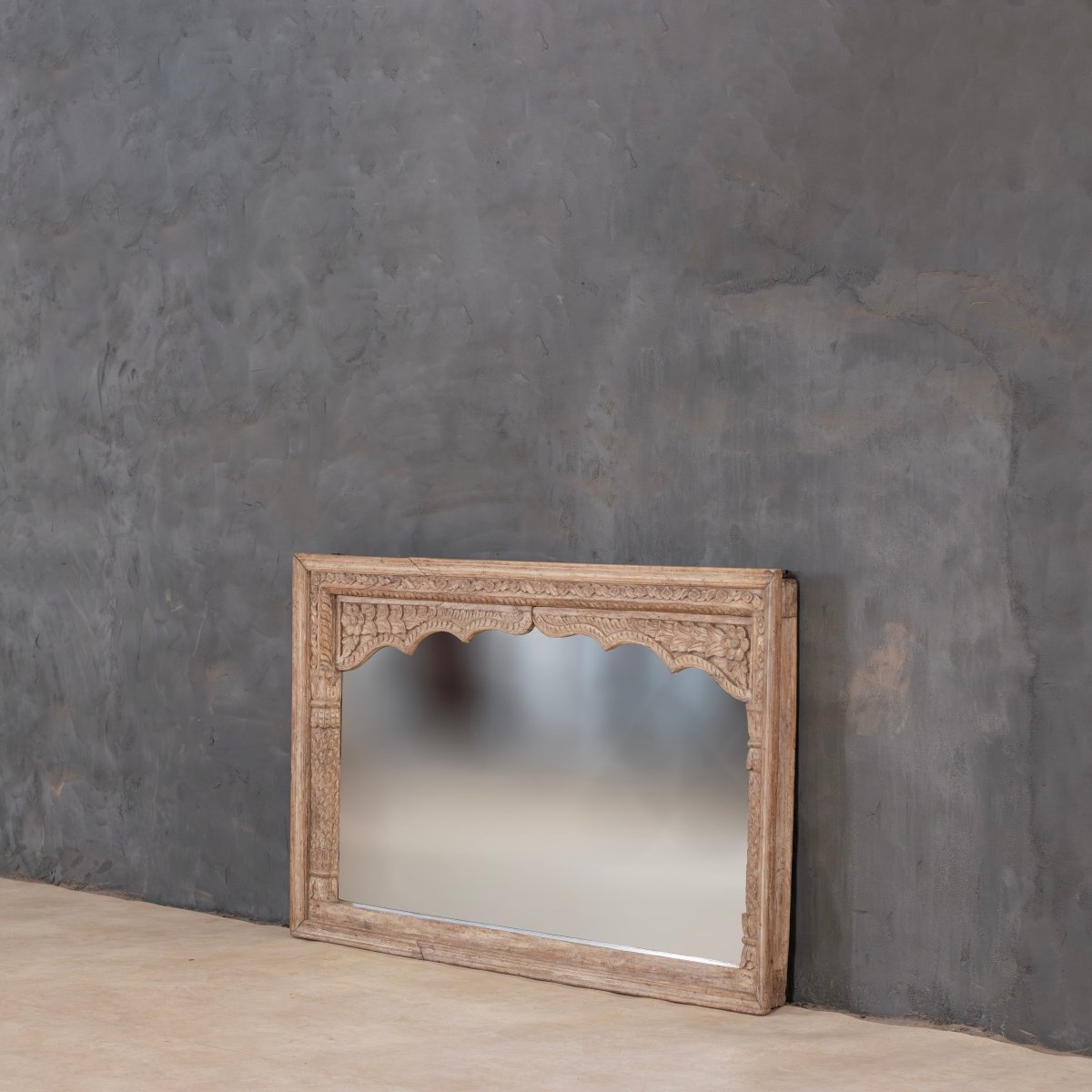 Design: This wooden mirror features an intricately carved frame with decorative arch detailing, adding artistic charm and visual depth to your space.