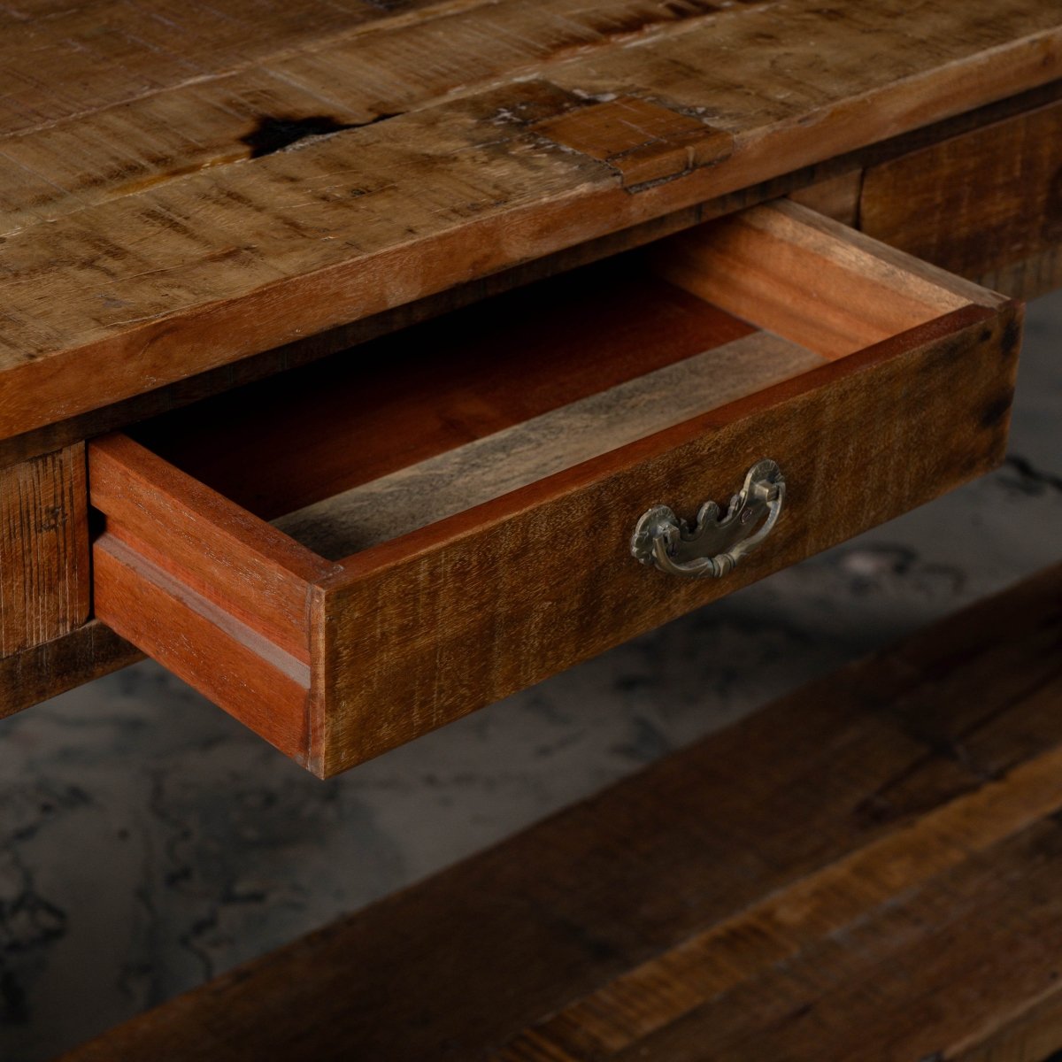 Each console table is meticulously handcrafted using premium reclaimed wood, ensuring durability and sustainability. The natural imperfections and unique grain patterns of the wood make every piece one-of-a-kind. By choosing this console table, you're not only adding a beautiful piece of furniture to your home but also supporting eco-friendly practices.