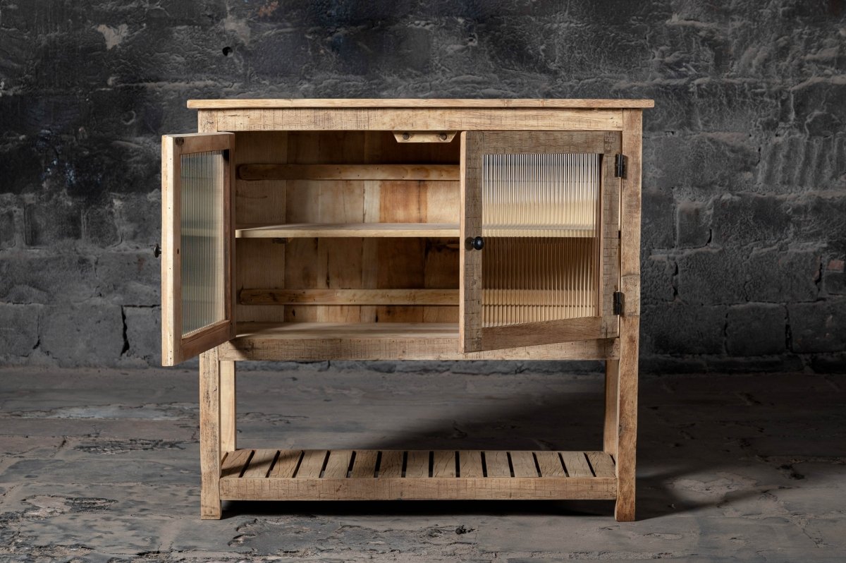 Artisan Craftsmanship: Each cabinet is a testament to fine craftsmanship, meticulously made from reclaimed wood. The weathered finish and unique character of every piece celebrate the beauty of timeworn materials and skilled artistry.