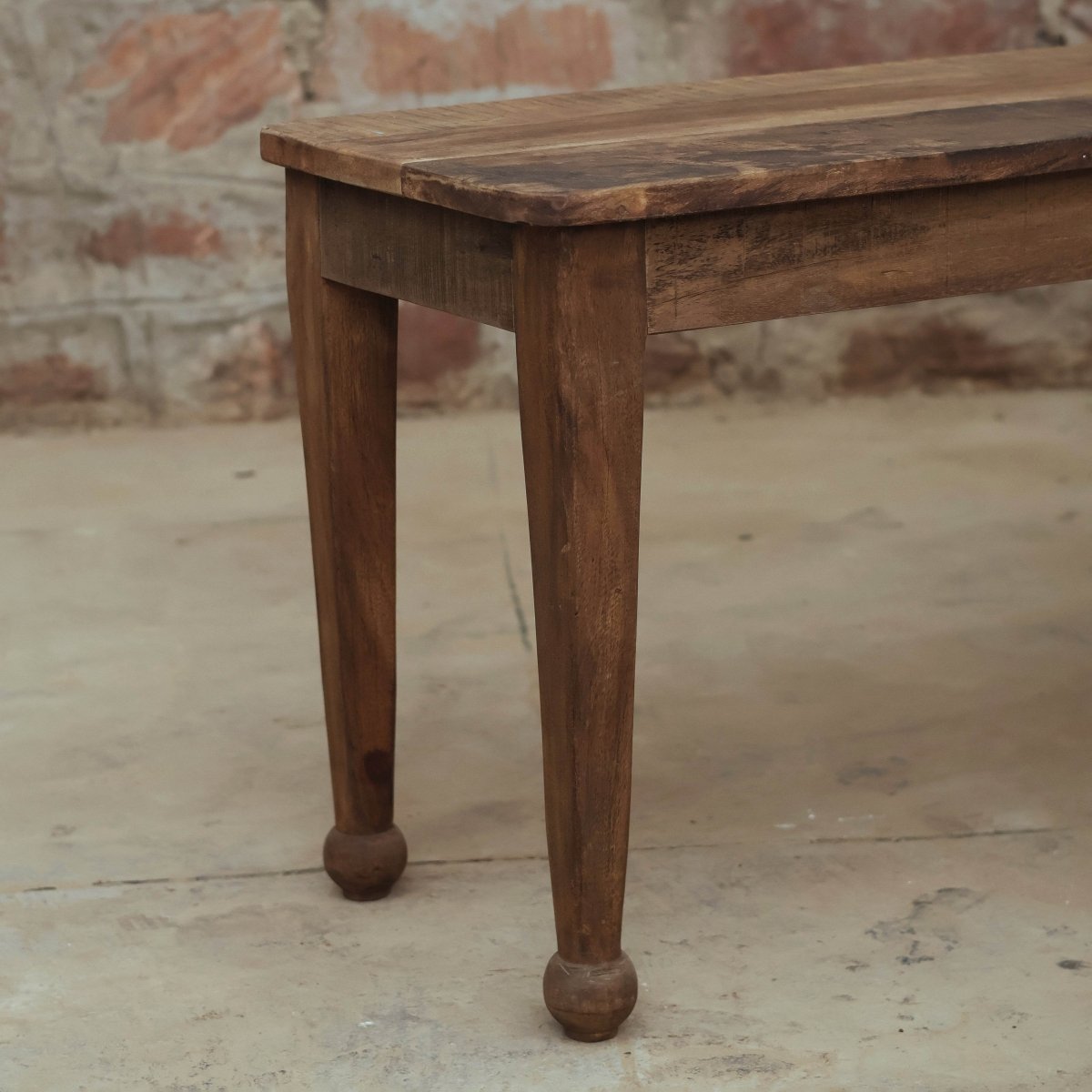 The Cloy Bench by The Vintage Realm is crafted from solid or reclaimed wood, chosen for its natural grain, texture, durability, and rustic appeal. The reclaimed wood gives the bench unique character—knots, color variation, and slight imperfections—that make each piece one-of-a-kind.