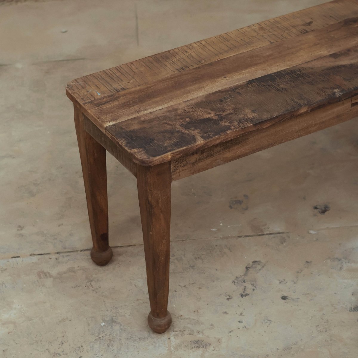 Finish: The bench showcases the organic beauty of reclaimed wood, enhancing its texture and warmth.