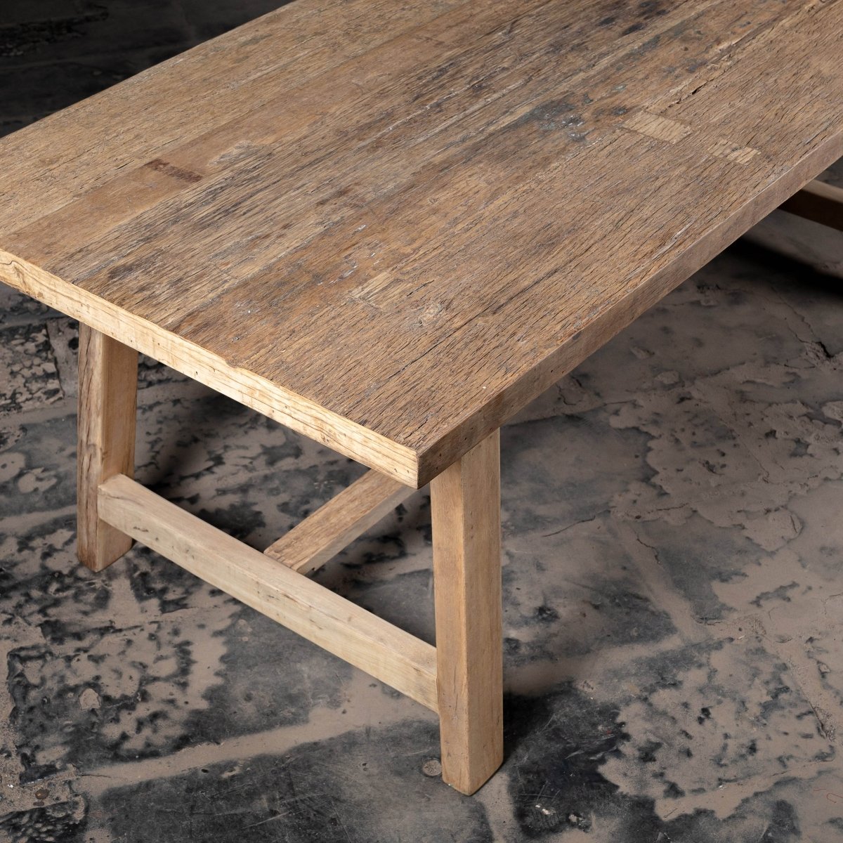 Recognizing that each home has unique spatial requirements, the table can be customized in length, width, and height to perfectly fit your dining area. Finishes include natural matte, warm walnut, or dark rustic tones, allowing you to match the table to your existing furniture and décor. This handcrafted dining table can also be paired with matching benches or chairs to create a cohesive and stylish dining ensemble tailored to your home.