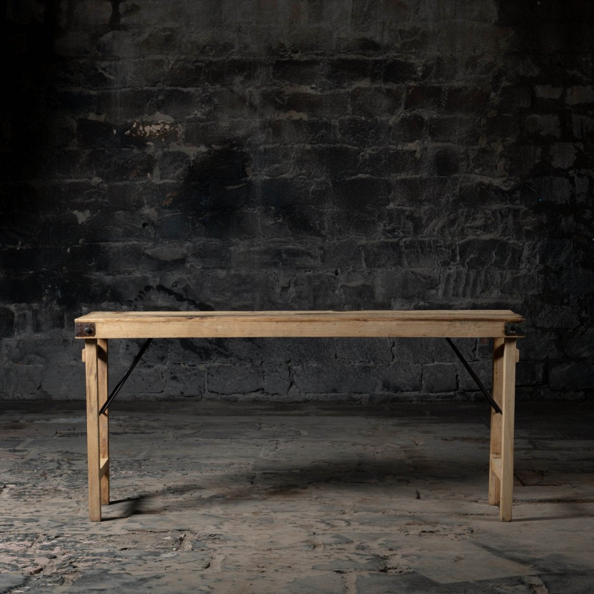 Discover The Haven Hinge Console Table by The Vintage Realm, an elegant and space-saving solution that seamlessly blends vintage charm with practical functionality. Crafted from authentic reclaimed wood, this reclaimed wood console table is designed for those who love eco-friendly furniture with rustic character. Its innovative folding hinge mechanism makes it an ideal folding console table for flexible living spaces—whether placed in entryways, narrow hallways, or compact apartments. Offering artisanal detailing and sustainable craftsmanship, The Haven Hinge Console is a standout piece built to elevate your décor.