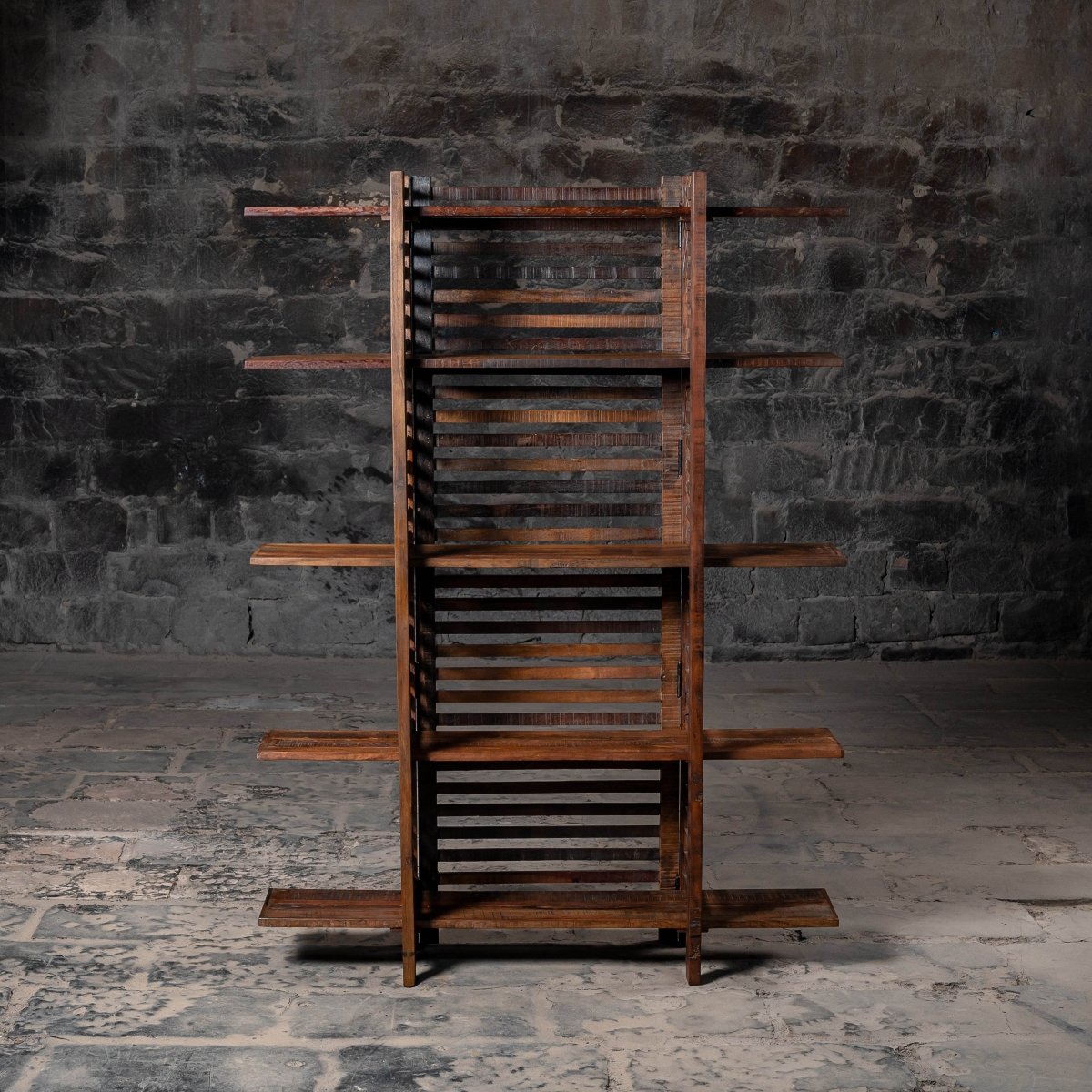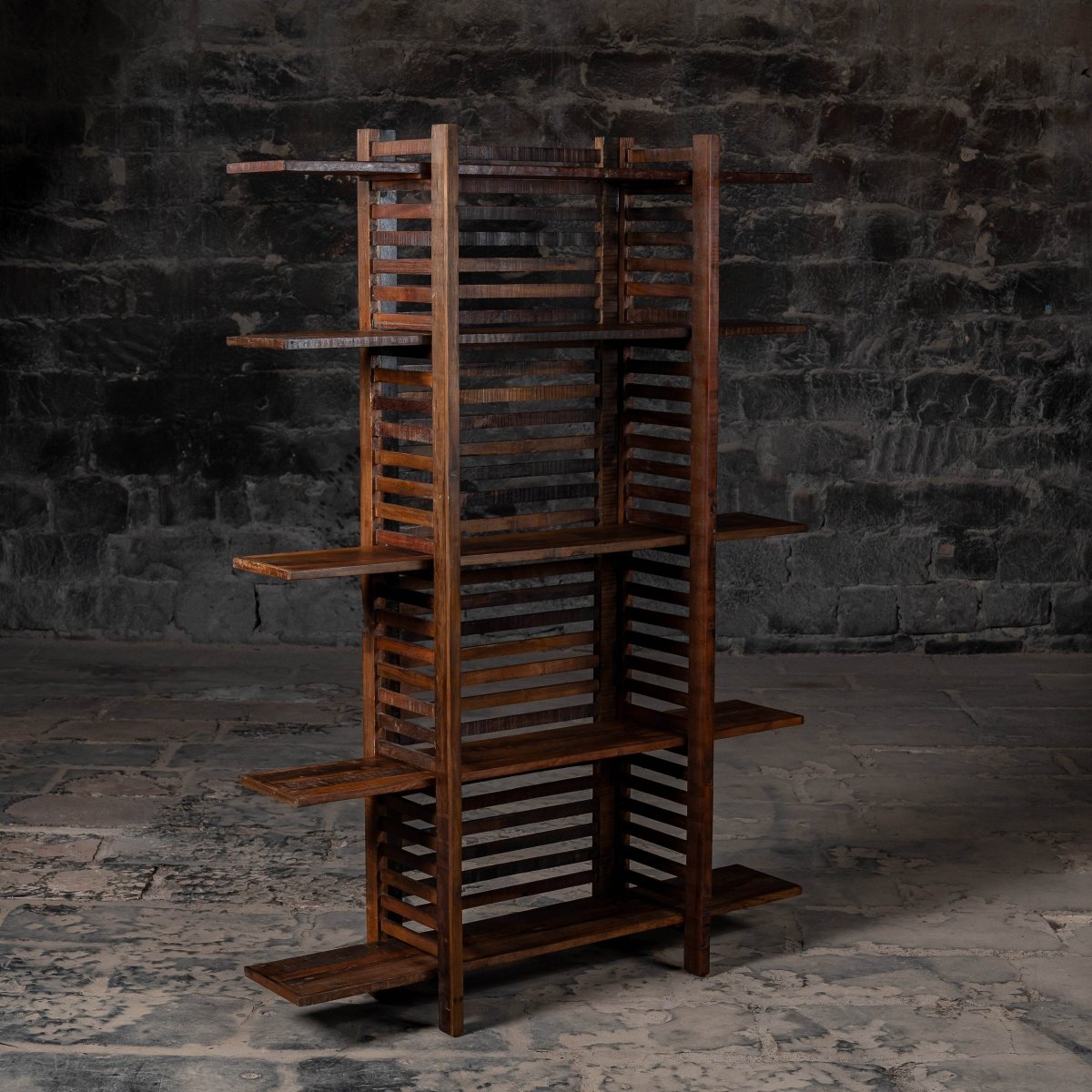 The Multi-Use Woody Bookshelf, crafted from reclaimed teakwood, offers customizable shelves and a versatile design. Perfect for living rooms, study rooms, offices, and home offices, it combines style with functionality.