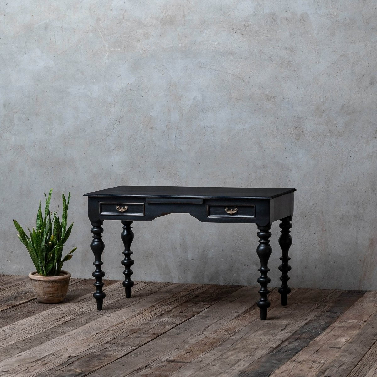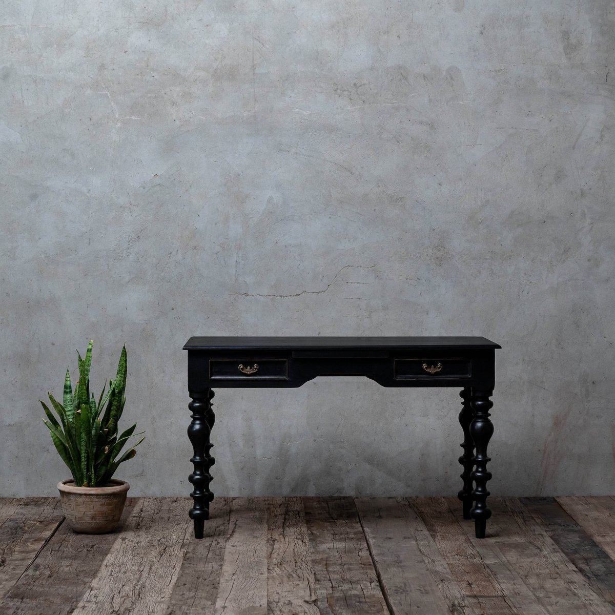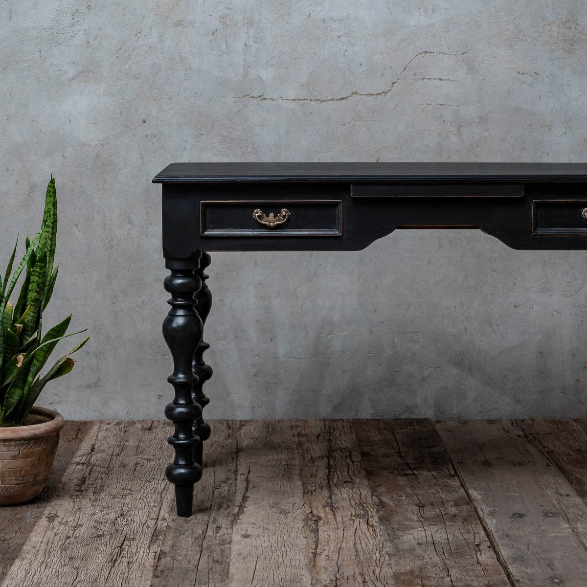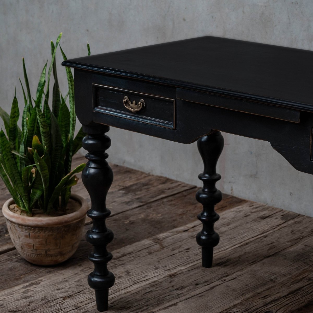 The Aveline Study Table, crafted from reclaimed teakwood, brings a blend of functionality and traditional charm to your workspace. Its sturdy construction and elegant design make it a practical yet stylish addition to any study or home office.