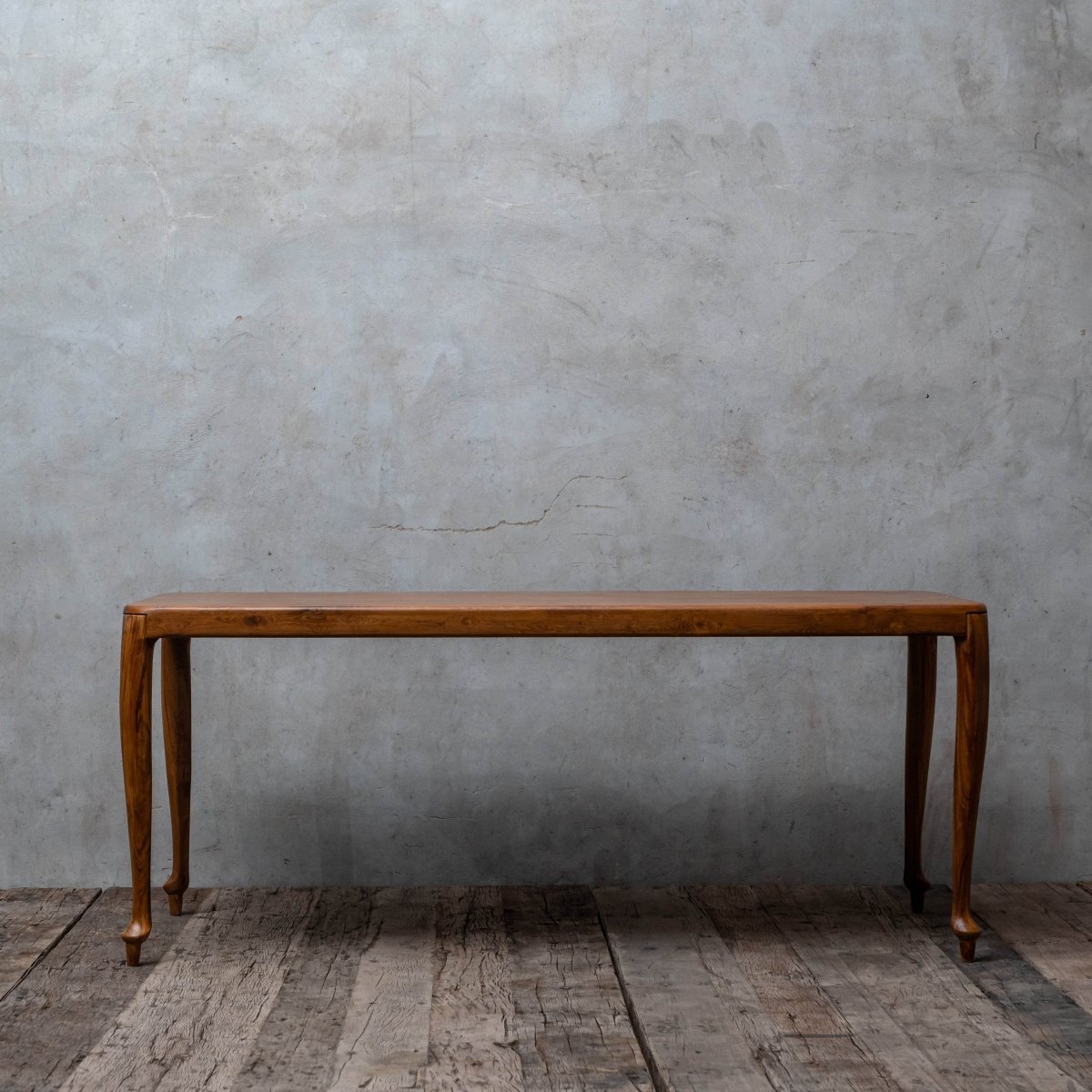 The Riviera Dining Table, crafted from reclaimed teakwood, blends rich design with sturdy craftsmanship. Its regal look and durable build make it an exceptional centerpiece for any dining area.